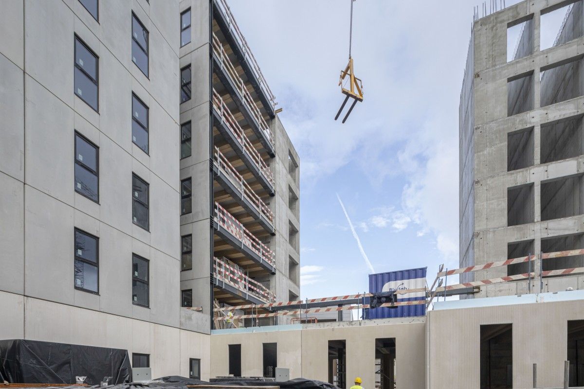 A construção está em andamento pelo Grupo Casais, que visa concluir a construção da residência universitária, que terá um total de 786 camas, até o verão de 2026.