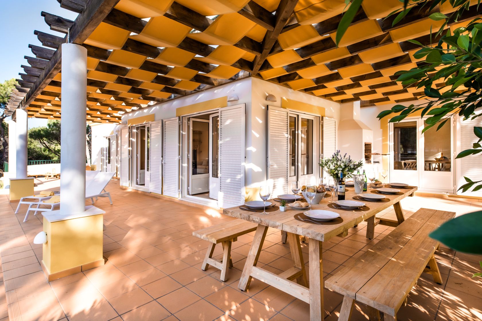Diese schöne Familienresidenz liegt in einem alten Pinienwald in der exklusiven Siedlung Praia Verde und bietet Zugang zum mit der Blauen Flagge ausgezeichneten Strand, wo Sie in wenigen Minuten zu Fuß eine Vielzahl von Bars, Restaurants, Geschäften und Cafés finden.