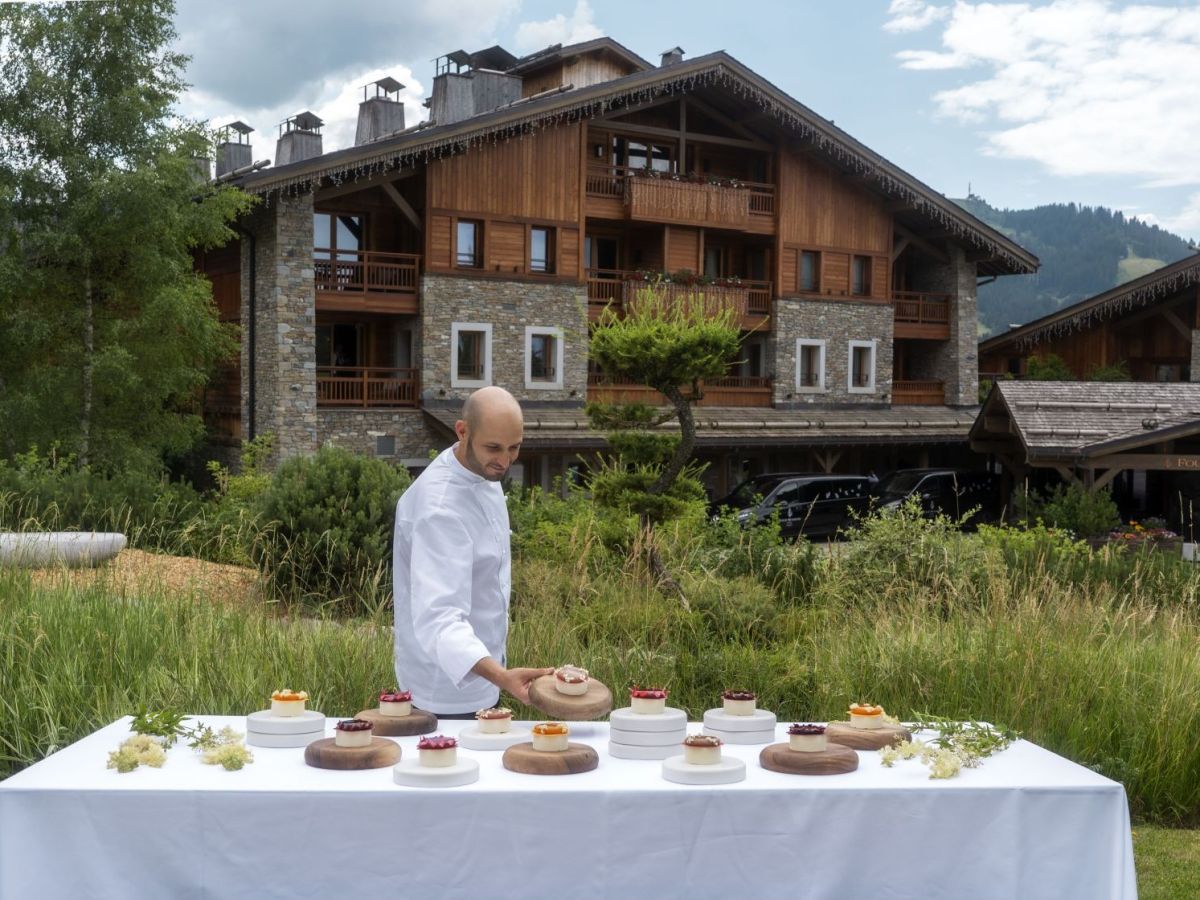 Justo antes de partir hacia el aeropuerto de Ginebra, paramos para un último almuerzo en el restaurante Heritage, en Les Chalets Du Mont d'Arbois, un hotel de madera alpino por excelencia. El comedor tiene vistas al valle, hoy envuelto en nubes atmosféricas que más tarde lloverán a cántaros. El almuerzo es un sublime estofado de ternera y berenjena cocinado las 24 horas, servido con un cremoso y exuberante puré. Y, quizás sorprendentemente, todavía tengo apetito para un postre de arándanos hechos de cuatro maneras.