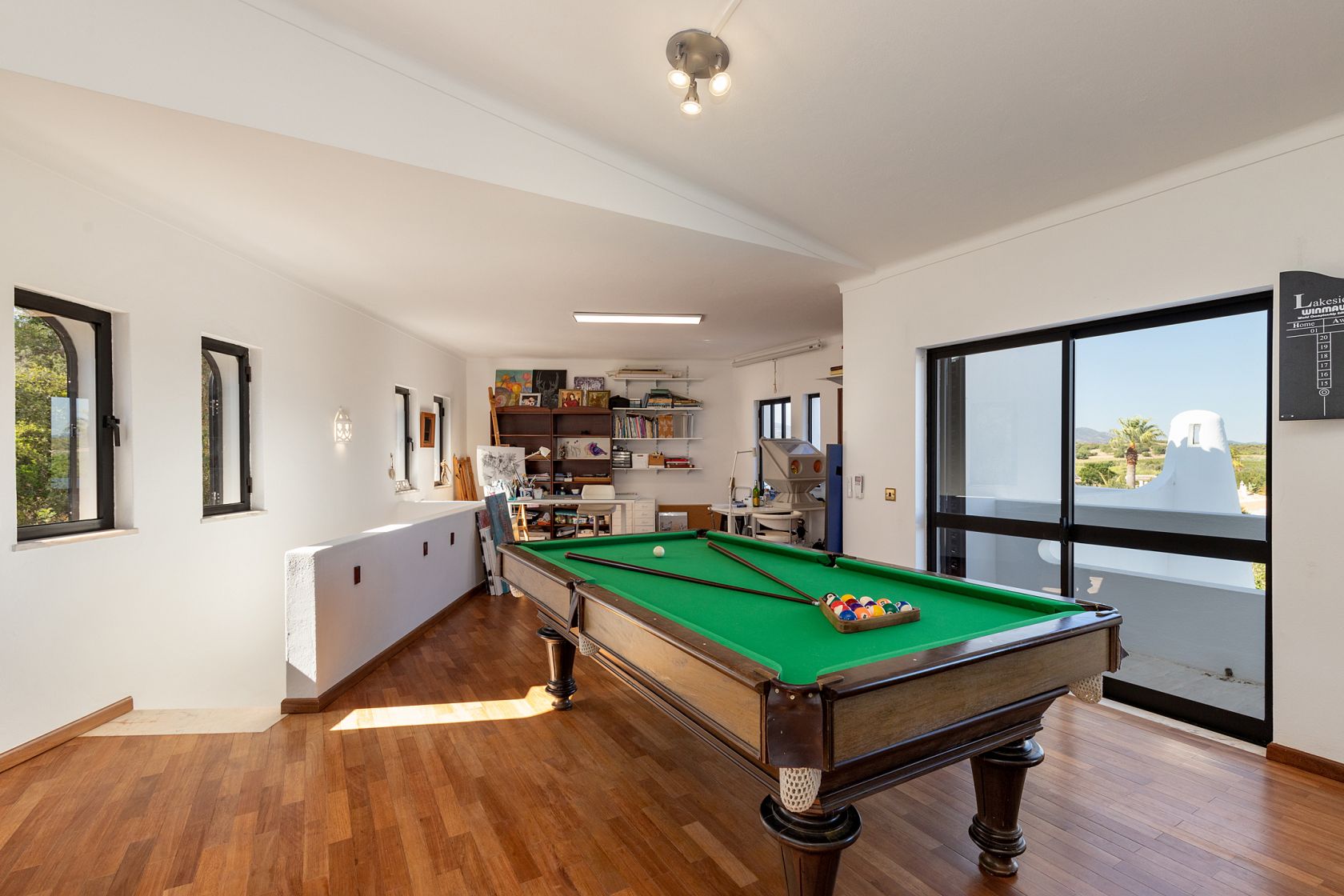 Más allá de la casa principal, un anexo independiente amplía las posibilidades de estilo de vida. La planta baja incluye una sauna, duchas y baños, mientras que el nivel superior está dedicado al ocio con una espaciosa sala de juegos acabada con suelos de madera de teca.