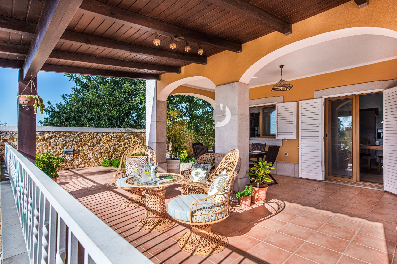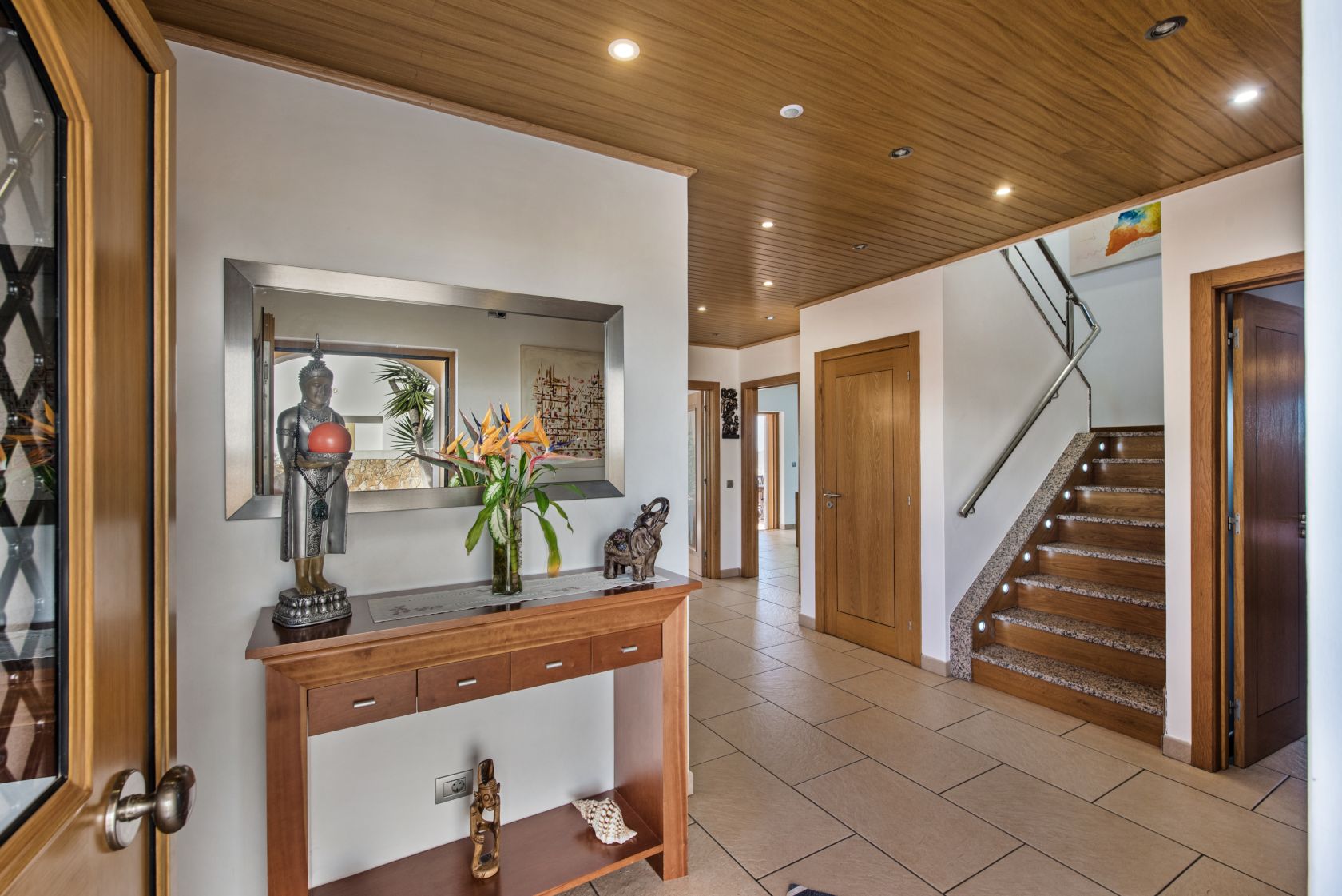 El acceso a la propiedad es a través de puertas eléctricas, lo que lleva a una gran zona de aparcamiento de adoquines en frente de la villa. El hall de entrada, con techo de madera y focos empotrados, conduce a un amplio y luminoso salón con zona de comedor y puertas que dan a una terraza orientada al sur con vistas a la piscina de 10 m x 5 m.