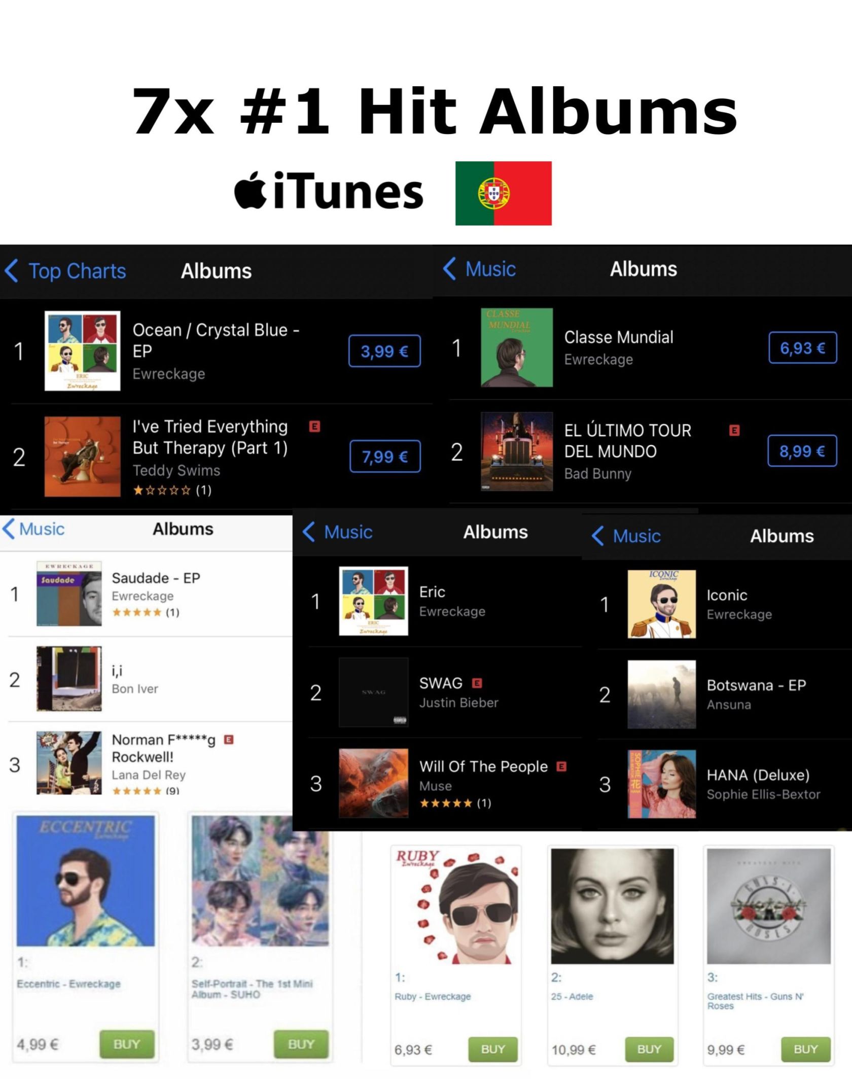 Tämä lähestymistapa näyttää toimineen hyvin, sillä hän on päässyt iTunes-listoille 35 maassa, joista 10:ssä listaykköseksi. Ylivoimaisesti menestyksekkäin näistä on kuitenkin ollut Portugalin listat, jossa hän on ollut seitsemän kertaa listaykkönen, mikä on miesartistien ennätys, ja sen päihittää vain Taylor Swift, joka on 20:ntenä.