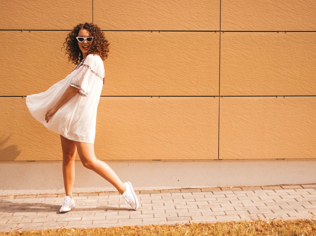 Les bons accessoires peuvent faire passer l'association chaussures de sport et robe d'un look décontracté à un look raffiné en quelques secondes.