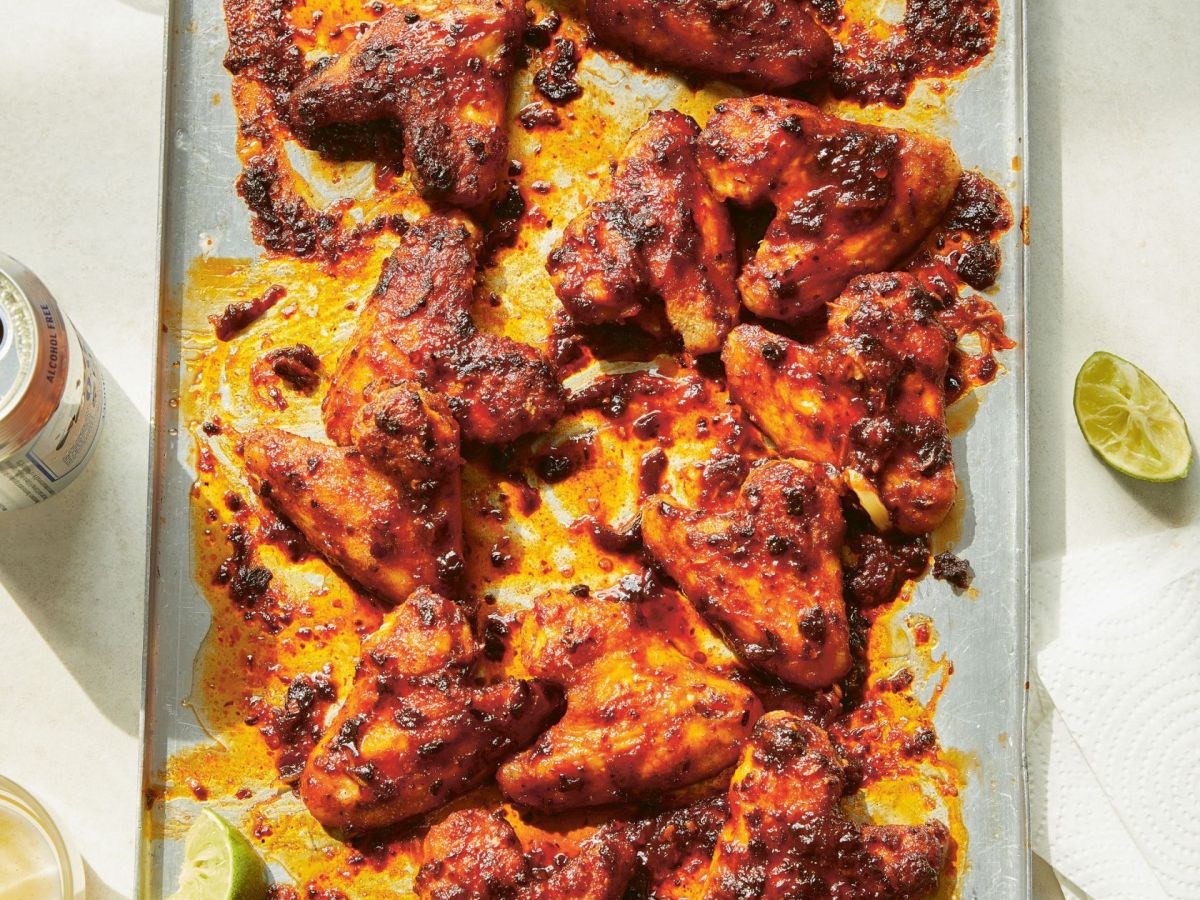 3. Asciugare le ali di pollo con carta assorbente in modo che non rimanga umidità sulla pelle. Immergerle nel rivestimento, assicurandosi che siano coperte su tutta la superficie e nelle fessure. Disporre le ali su due teglie da forno, ben distanziate tra loro, e infornare per 40-45 minuti fino a quando non saranno croccanti.