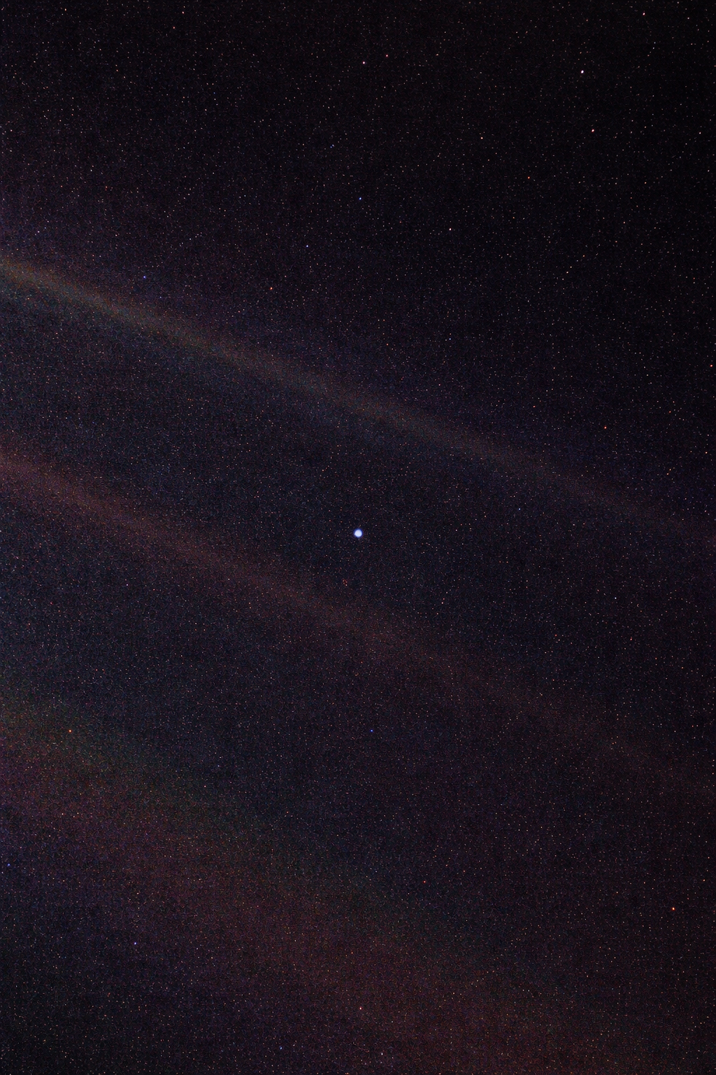 Il nostro atteggiamento, la nostra immaginaria presunzione, l'illusione di avere una posizione privilegiata nell'universo sono messi in discussione da questo punto di luce pallida. Il nostro pianeta è un puntino solitario nel grande e avvolgente buio cosmico. Nella nostra oscurità, in tutta questa vastità, non c'è alcun indizio che l'aiuto possa venire da altrove per salvarci da noi stessi.