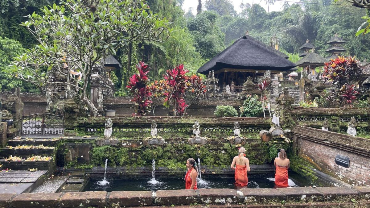On my second morning at the hotel, I order the floating breakfast. Two waiters arrive at my villa carrying an enormous wicker tray filled with food platters, which they carefully lay in the pool.