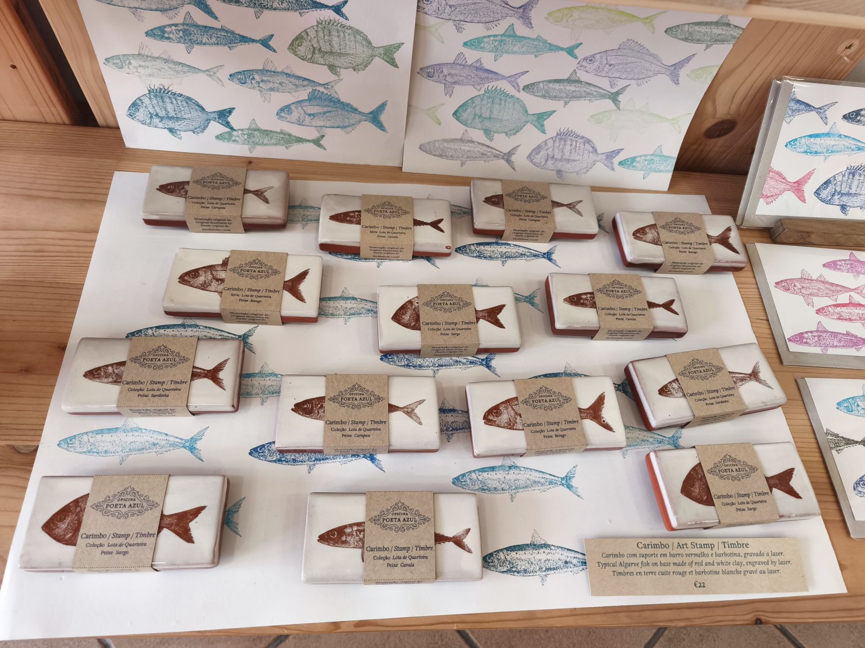 De vismarktcollectie bevat kunststempels geïnspireerd op de meest typische soorten van de ambachtelijke vismarkt: makreel, zeebrasem, sardines en meer.