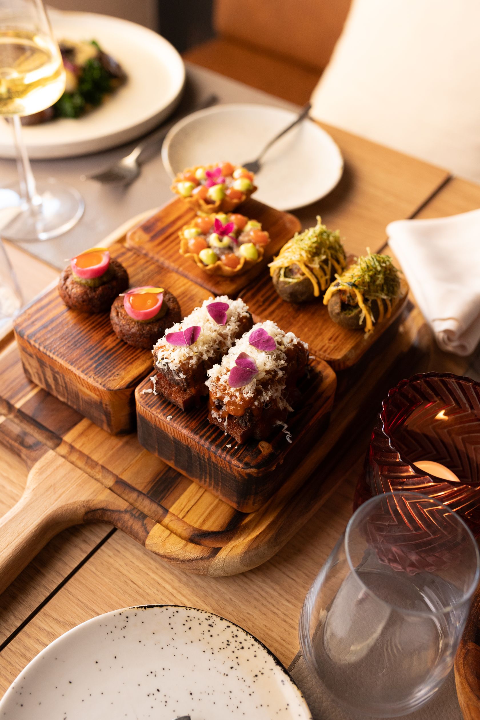 Från det ögonblick du kliver in i restaurangen skapar den eleganta, moderna inredningen - med sina rena linjer och mjuka belysning - förutsättningar för en matupplevelse som är både sofistikerad och inbjudande.