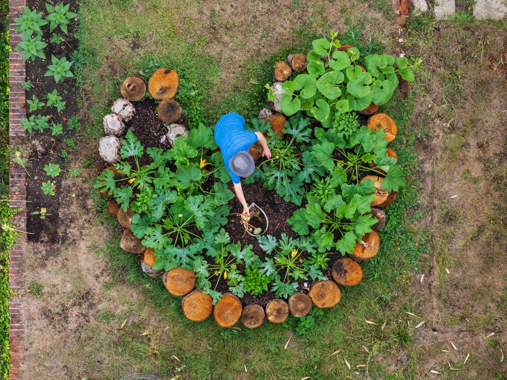 "De grödor som du sedan planterar i den upphöjda bädden runt den centrala komposten kommer att få näring och det minskar också mängden vattning för din odling. Nästan alla grönsaker mår bra av det, från sallat och kål till zucchini och pumpa."