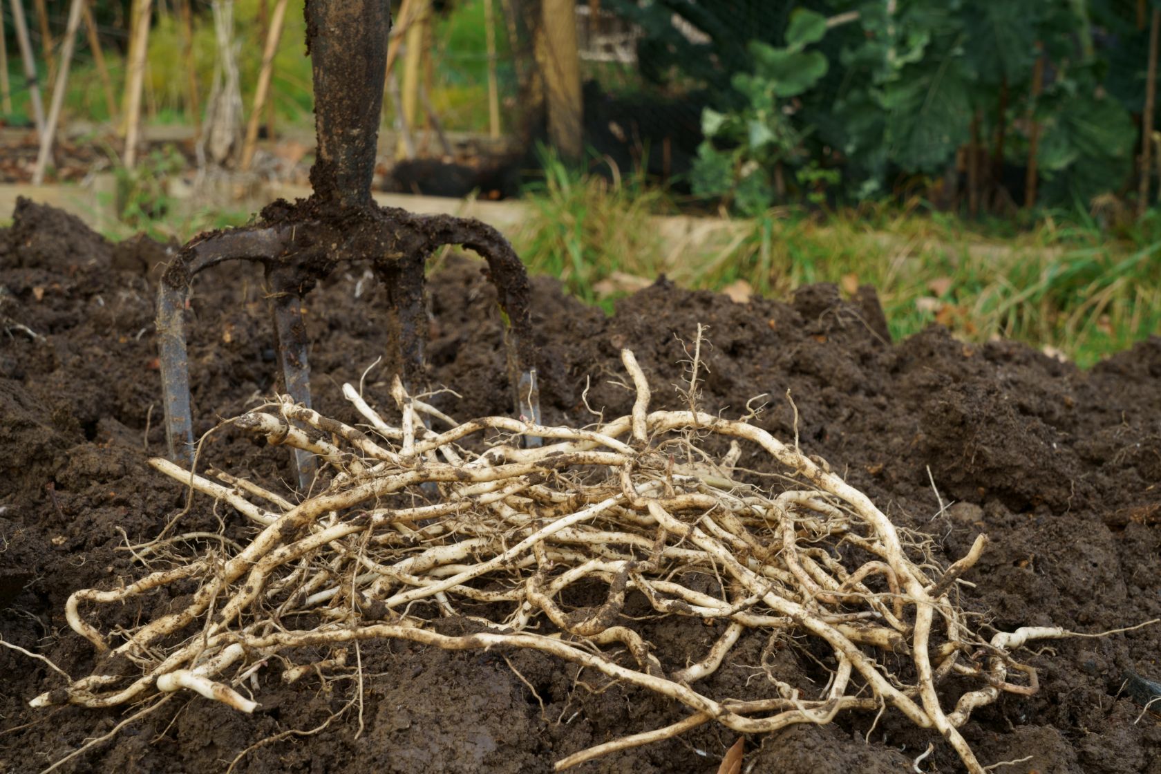 "Men om du dränker den kan du använda den som ett flytande foder eftersom det innehåller mycket kväve och kalium, så det är ett bra sätt att återvinna rötter från bindweed. Se till att den har ruttnat, vilket tar några veckor. Rötterna, som ser ut som vit spagetti, ska ha blivit svarta och kännas kladdiga. Sedan har du det här härliga flytande fodret."